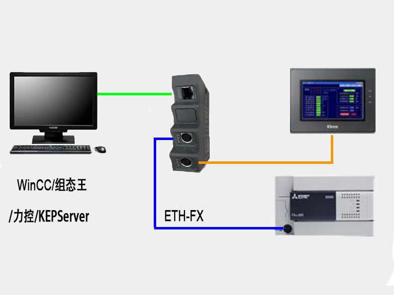 通過ETH-FX,可將三菱FX系列PLC,如:型號FX1N/1S/2N/3S/3G/3GC/3U/3UC 轉成以太網,直接與上位機通訊。